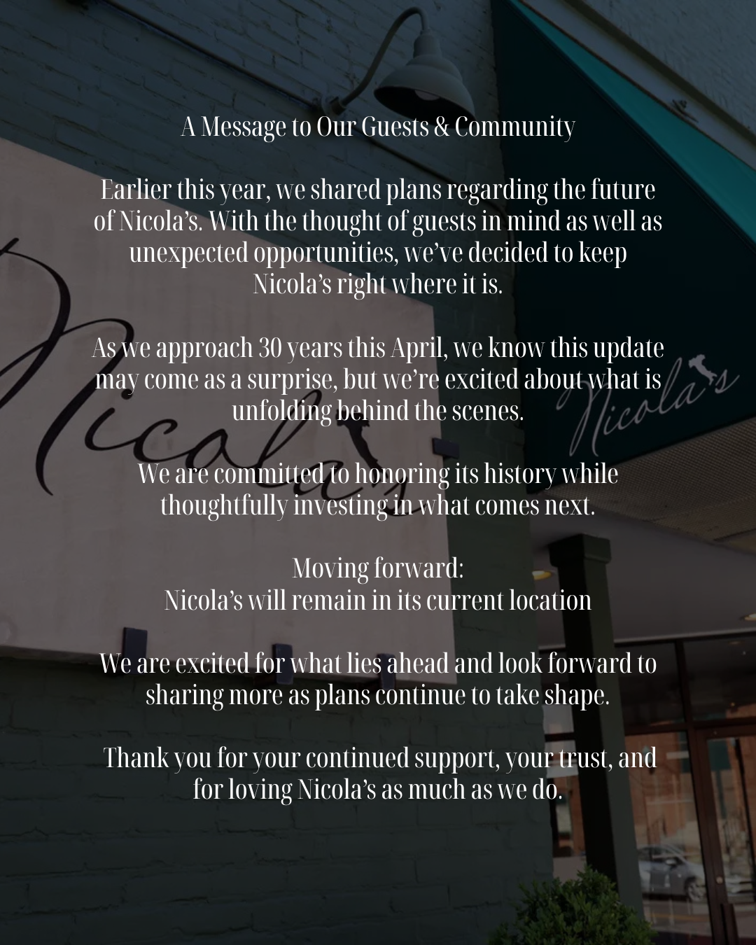 Update on Nicola's
